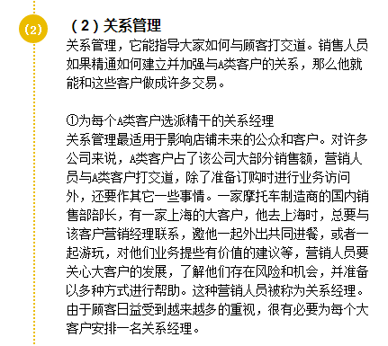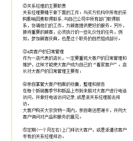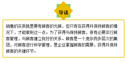 实行顾客系列化。如上面所说,顾客是一个庞大而又多层次的集团。一家店铺少则几十、几百个客户,多则几千,甚至上万客户。如何管理好如此众多的顾客是一项十分重要而又急需解决的问题。组织顾客系列化就是这样一种化繁为简、行之有效的管理方法。具体操作时,可使用两种不同的方法。