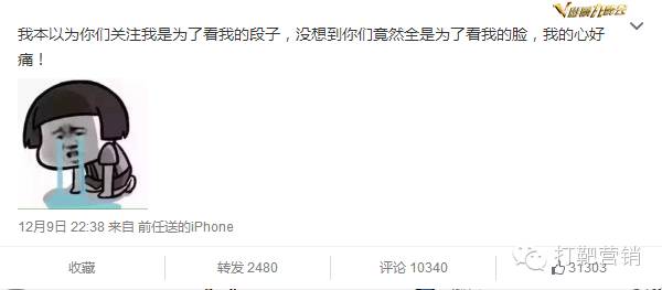 就连她自己都发微博“自嘲”:我本以为你们关注我是为了看我的段子,没想到你们竟然全是为了看我的脸,我的心好痛!